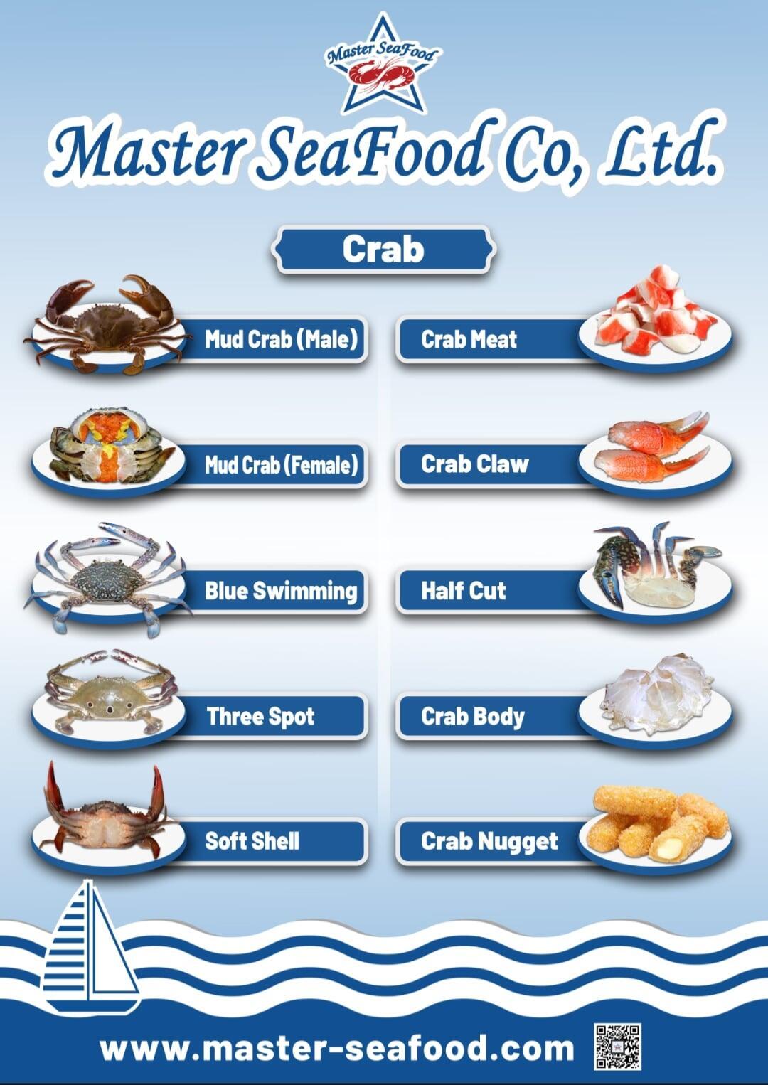 Master Seafood offers premium crabs, including Mud Crabs and Blue Swimming varieties, celebrated for their succulent, tender meat. Rich in essential minerals like selenium and omega-3s, our crabs are meticulously graded. Whether live, fresh, or frozen, we ensure a high-quality harvest delivered directly to your market.